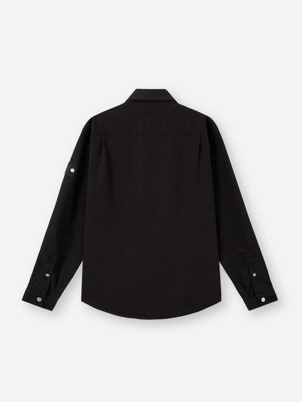 Overshirt made from a 13.5oz denim, woven with a compact 3/1 twill weave that creates the signature diagonal pattern of denim, lending remarkable durability to the fabric. Garment dyed.