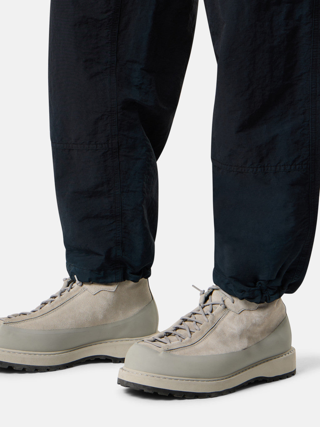 Chino trousers made from a fabric composed of mechanically spun nylon fibres that are resistant to wear and abrasion. During the spinning process, the nylon filaments are steamed to achieve a feel closer to organic fibres. Garment dyed with carefully selected dyes, then faded through an innovative corrosion treatment, reflecting Stone Island's ongoing commitment to research and experimentation. The corroded areas, particularly where the fabric is thicker, take on varied colours due to the irregularity of the treatment, creating a slightly worn effect and making each piece unique.