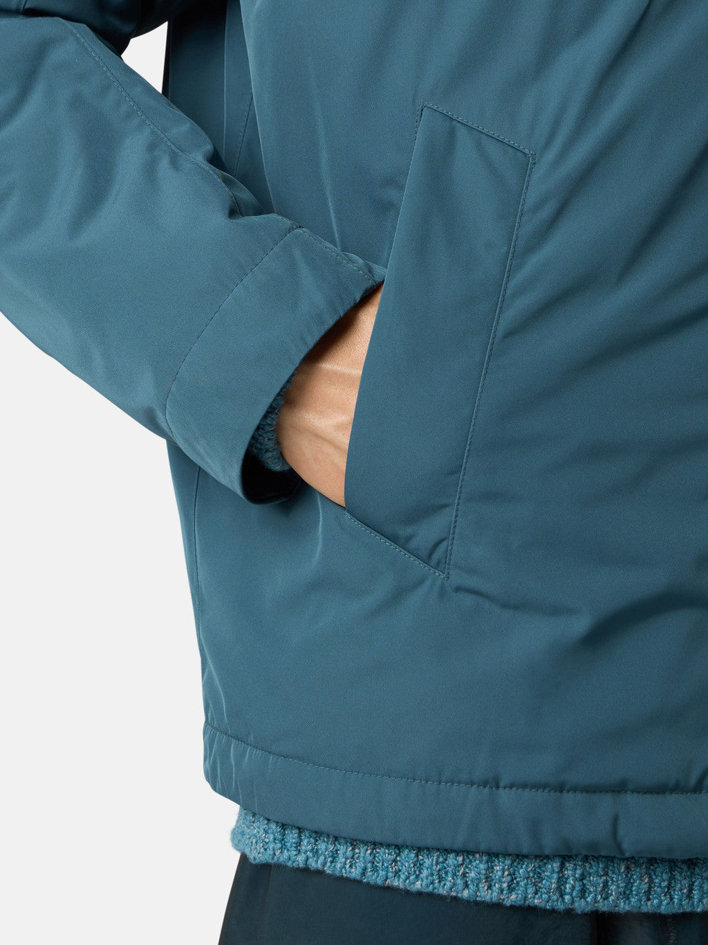 Padded hooded jacket in a polyester micro twill featuring a spring-like, helical molecular structure. This fibre lends a soft and comfortable texture to the fabric with deep and rich colours. The garment is padded with an inner layer of PrimaLoft Gold P.U.R.E , an exclusive 100% recycled blend of ultra-small diameter fibres resulting in superior thermal performance. It delivers the highest warmth-to-weight ratio of all synthetic insulations. The garment is treated with an anti-drop agent.