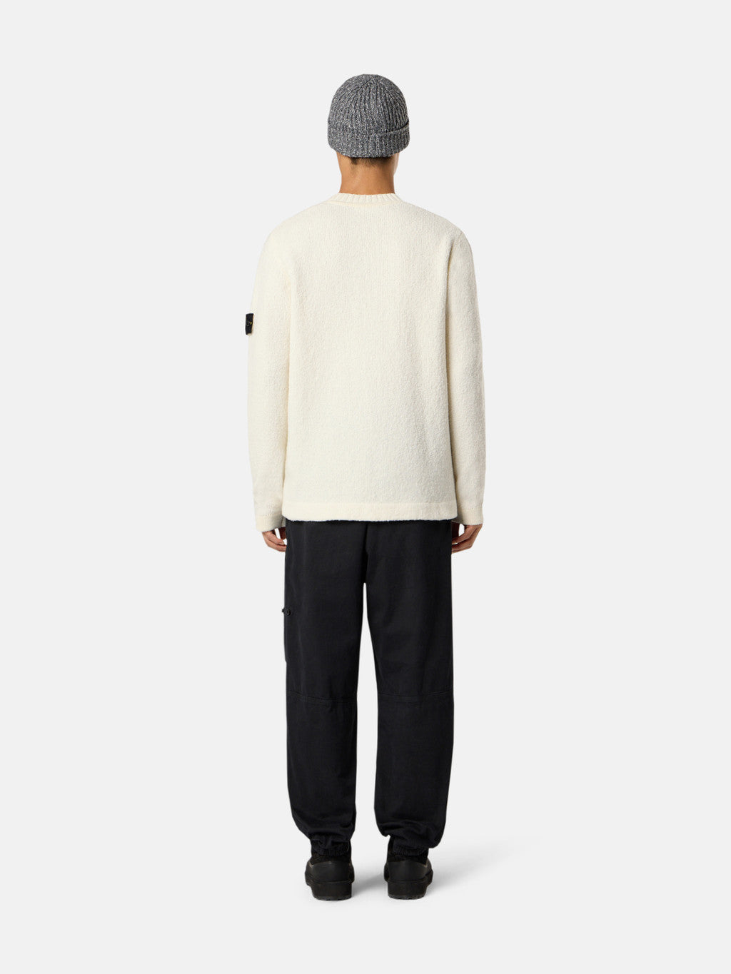 Knit crewneck jumper in wool-nylon blend with a brushed texture. Stocking stitch. Gauge 5.